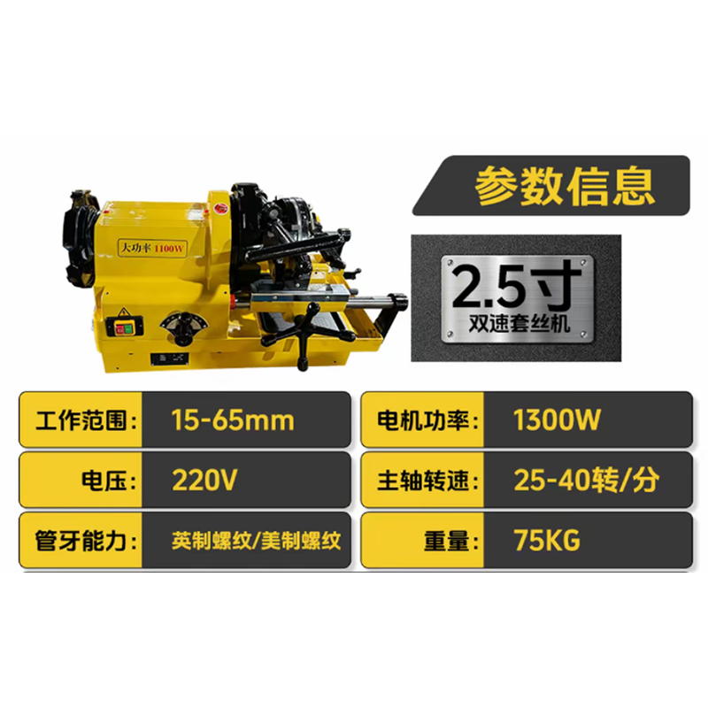 ماكينة خيوط الأنابيب الكهربائية ذات السرعة المزدوجة SQ65 مقاس 2.5 بوصة 15-65 مم هي أداة صناعية احترافية مصممة لعمليات خيوط الأنابيب الدقيقة، مع نطاق عمل مخصص يتراوح من 15 إلى 65 مم (يطابق قطر الأنبوب القابل للتطبيق من 1/2 بوصة إلى 2.5 بوصة) لتلبية احتياجات معالجة الأنابيب المتنوعة في الموقع. تفاصيل المنتج الرئيسية هي كما يلي: